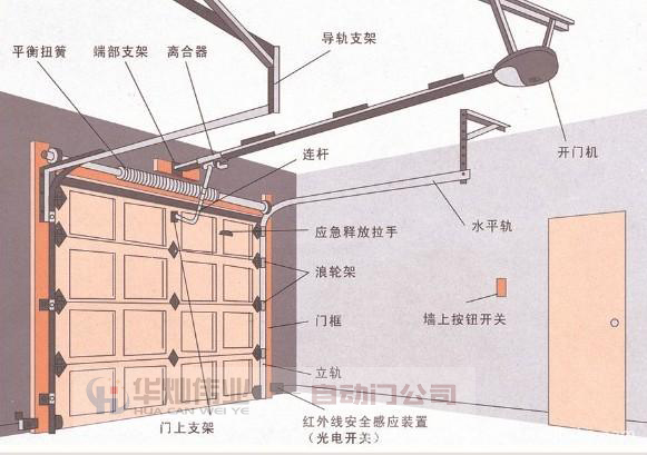 堅固耐用:門板表面選用優質彩鋼板,內有暗強加筋,中間選用聚銨脂發泡填充,并有良好的阻燃、保溫、隔熱及隔音功能。門板厚度為40mm、50mm.先進獨特的配件保證車庫門的高質量、長壽命。